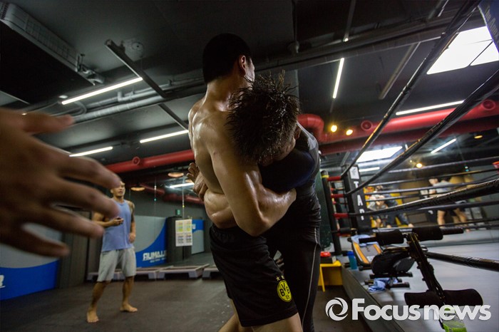 (서울=포커스뉴스) 오는 21일(한국시각) 미국 라스베이거스 T-모바일 아레나에서 개최되는 UFC-202에 출전해 러시아 출신 술탄 알리예프를 상대로 웰터급 경기가 예정된 임현규(오른쪽)가 3일 오후 서울 서대문구 TAP복싱 & 레슬링에서 레슬링 훈련 하고 있다.