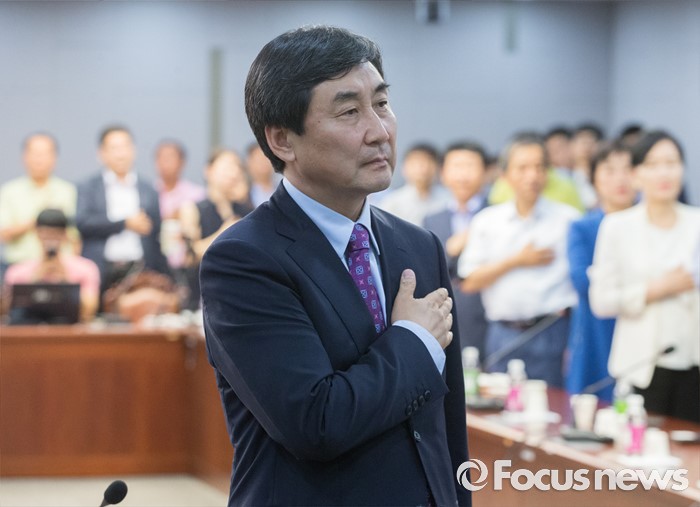 | △ 국민의례하는 이종걸 |