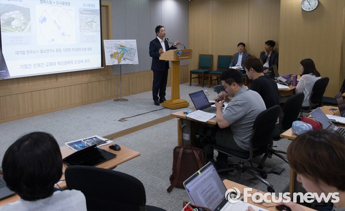 (서울=포커스뉴스) 김학진 서울시 도시계획국장이 3일 오전 서울시청 브리핑룸에서 서울시 양재·우면 R&CD 육성 종합 계획을 발표하고 있다.