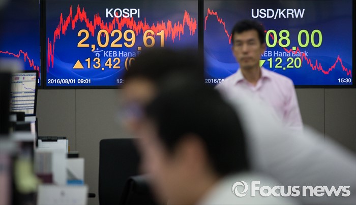 (서울=포커스뉴스) 증권·파생상품 시장, 금 시장의 정규장 매매거래 시간이 30분씩 연장된 1일 오후 서울 중구 KEB외환은행 본점 딜링룸에서 딜러들이 업무를 보고 있다. 이날 코스피는 13.42(0.67%) 오른 2,029.61에 마감했으며, 원·달러 환율은 전날보다 12.2원 내린 1108.0원에 거래를 마쳤다.