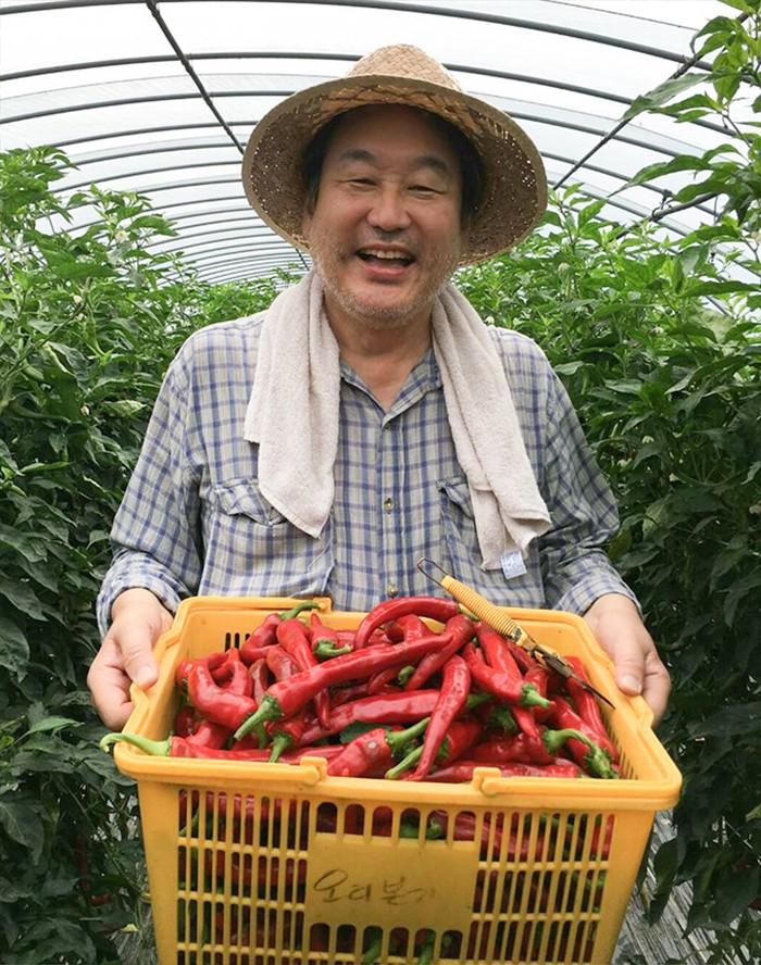 (서울=포커스뉴스) 전국 민생투어를 이어가고 있는 김무성 새누리당 전 대표가 2일 전남 보성군 벌교읍 한 마을을 방문해 주민들과 함께 수확한 고추를 들어보이고 있다. <사진제공=김무성 전 대표 페이스북>