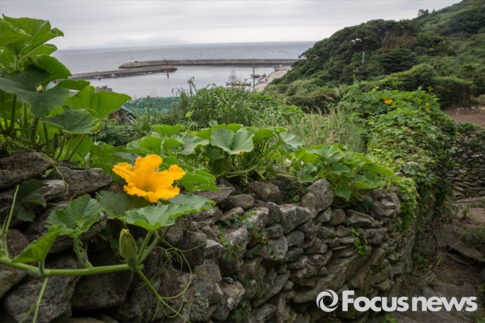 (여서도=포커스뉴스) 여서도 돌담길에핀 호박꽃이 낯선 외지인을 반갑게 맞이 한다.