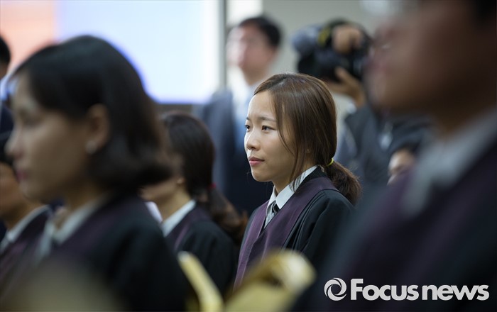 (서울=포커스뉴스) 1일 오전 서울 서초동 대법원에서 열린 신임 법관 임명식에서 신임법관들이 양승태 대법원장의 인사말을 듣고 있다.
