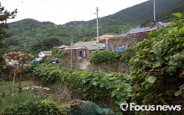 (여서도=포커스뉴스) 빈 집터에서 본 여서도마을전경. 사람의 출입이 한가한 집터에 거미줄이 차지하고 있다.