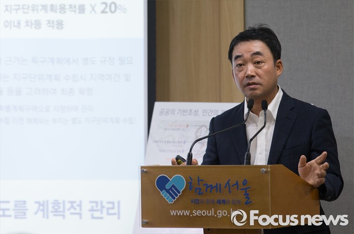 (서울=포커스뉴스) 김학진 서울시 도시계획국장이 3일 오전 서울시청 브리핑룸에서 서울시 양재·우면 R&CD 육성 종합 계획을 발표하고 있다.