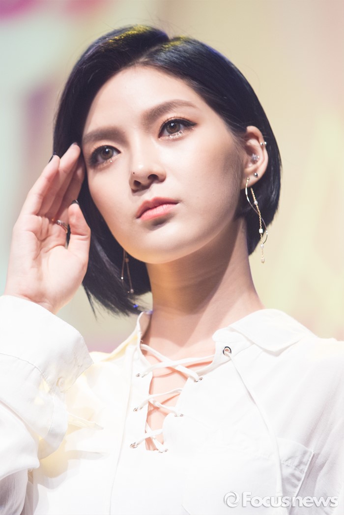 (서울=포커스뉴스) 4일 오전 서울 도봉구 플랫폼창동61에서 열린 걸그룹 나인뮤지스A의 싱글앨범 'MUSES DIARY' 발표 쇼케이스에 참석한 멤버 소진이 취재진을 바라보고 있다.