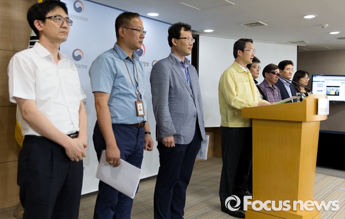 (서울=포커스뉴스) 4일 오후 서울 종로구 정부서울청사에서 김희겸(왼쪽 네번째) 국민안전처 재난관리실장이 부산-울산 악취발생에 따른 민관합동조사단 결과발표를 하고 있다.