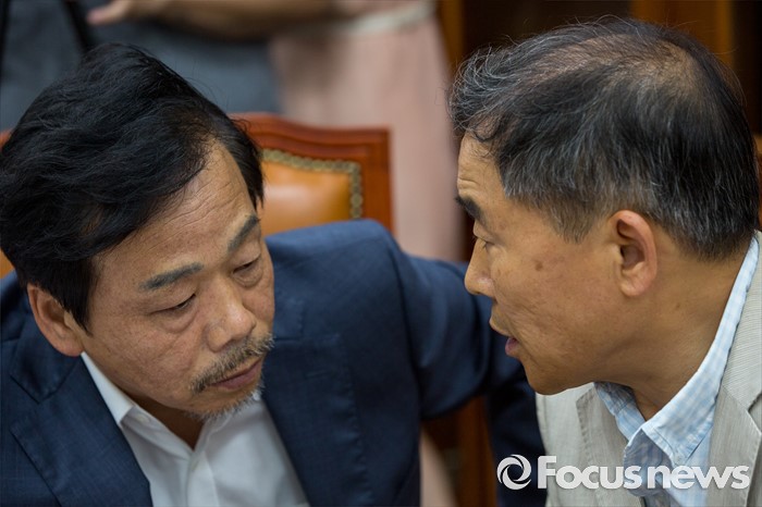 (서울=포커스뉴스) 국회 농해수위 부정청탁금지법 소위 위원장인 황주홍(오른쪽) 국민의당 의원과 이완영 새누리당 의원이 4일 오후 서울 여의도 국회에서 열린 농림축산식품해양수산위원회 부정청탁금지법 관련 소위에 참석해 대화 하고 있다.