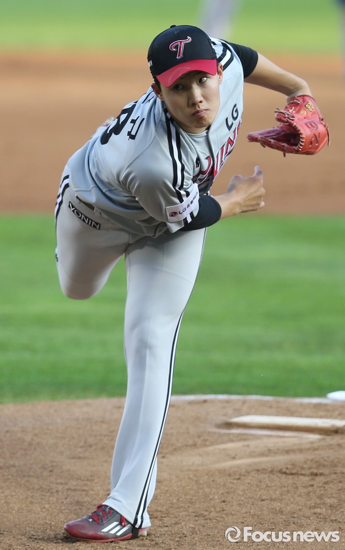(서울=포커스뉴스) 4일 서울 잠실구장에서 열린 2016 프로야구 LG-두산 경기에서 1회말 LG 선발투수 임찬규가 투구하고 있다.