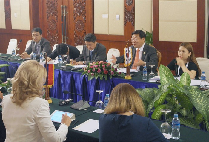 (서울=포커스뉴스) 주형환 산업통상자원부 장관이 4일(현지시간) 라오스 비엔티안 돈 찬 호텔에서 알렉세이 울류카에프(Alexei Ulyukayev) 러시아 경제개발부 장관과 한-러시아 양자회담을 갖고 있다. <사진제공=산업통상자원부>