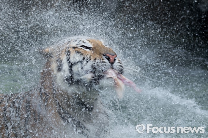 | △ 시베리아 호랑이, 물을 털어털어 |