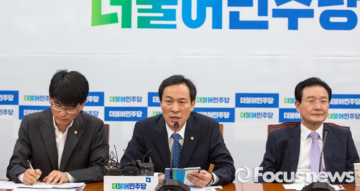 (서울=포커스뉴스) 우상호 더불어민주당 원내대표가 5일 오전 서울 여의도 국회에서 열린 상임위원회 간사단 간담회에 참석해 모두발언 하고 있다.