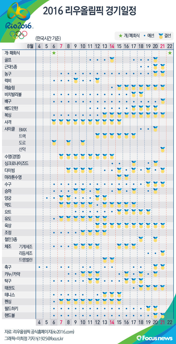 | △ [그래픽] 2016 리우올림픽 경기일정 |