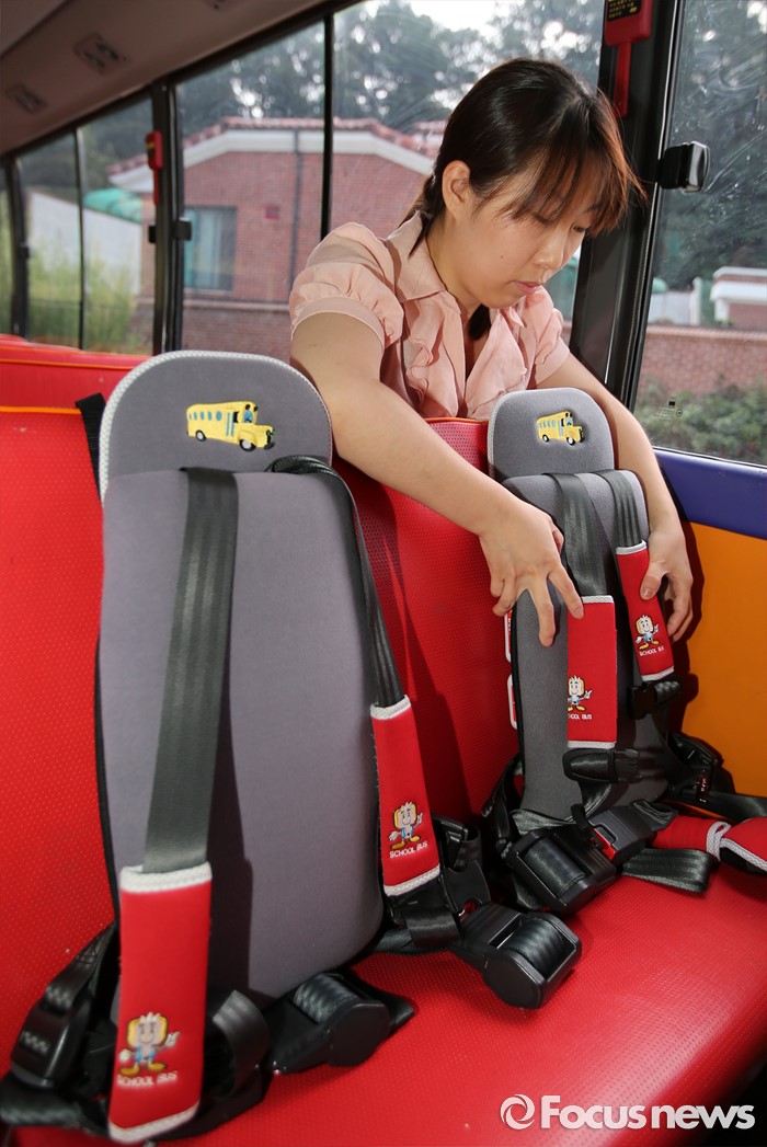 (세종=포커스뉴스) 5일 오전 세종시 금남면 금남어린이집에서 어린이집 교사가 원생들이 차량에 내린 후 통학차량을 점검하고 있다. 이날 정진엽 보건복지부장관은 유치원 통학차량 안전 점검을 실시했다.