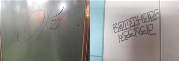 한편 최근 서울메트로와 도시철도공사는 신림·고속터미널·건대입구역 등 서울 시내 지하철역 곳곳에서 발견된 그라피티와 관련 경찰에 수사를 의뢰했다.잠실역, 선릉역에 그려진 그라피티. <사진 제공=송파경찰서>