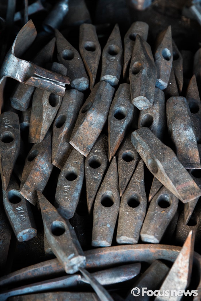 (서울=포커스뉴스) 서울이 낮 최고 36도를 기록하는 등 전국적으로 불볕더위가 기승을 부리는 5일 오전 서울 은평구 수색동에 위치한 형제대장간에서 작업이 끝난 건설용 공구들이 화덕 옆에 쌓여 있다.