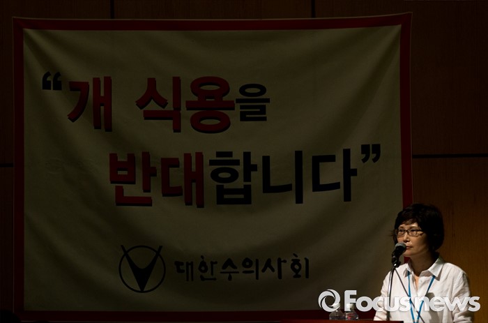 (서울=포커스뉴스) 5일 오전 서울 종로구 서울역사박물관에서 열린 개 식용 종식을 위한 국제컨퍼런스에서 개 식용 근절을 위한 포스터가 부착돼 있다.