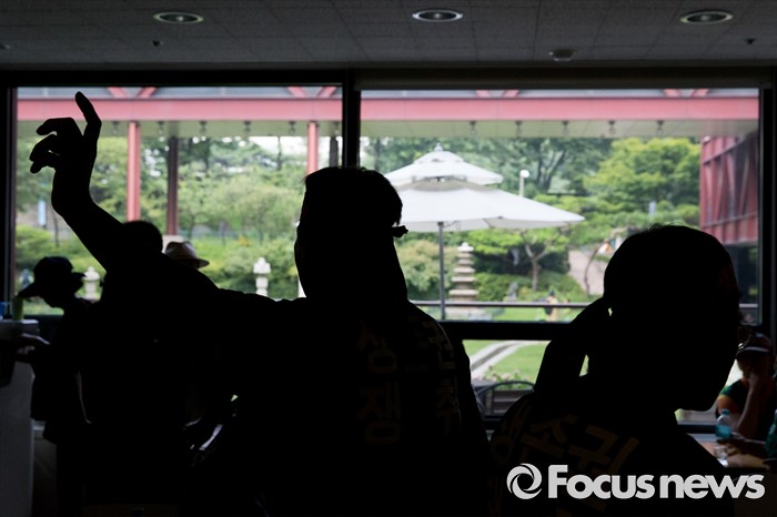 (서울=포커스뉴스) 5일 오전 서울 종로구 서울역사박물관에서 대한육견협회 회원들이 개 식용 종식을 위한 국제컨퍼런스를 반대하는 집회를 하고 있다.