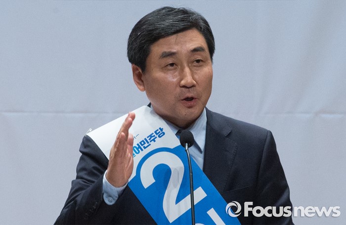 (서울=포커스뉴스) 5일 오후 서울 여의도 국회 의원회관에서 열린 더불어민주당 당대표 선출을 위한 예비경선대회에 참석한 이종걸 당대표 후보가 정견발표를 하고 있다.