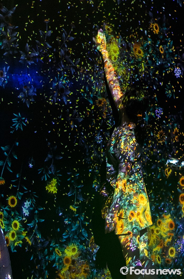 (서울=포커스뉴스) 5일 오후 서울 송파구 잠실 롯데월드 내 마련된 '팀랩월드' 상설전시장을 찾은 관람객이 화려한 디지털아트를 체험하고 있다.