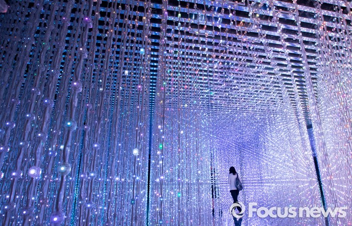 (서울=포커스뉴스) 5일 오후 서울 송파구 잠실 롯데월드 내 마련된 '팀랩월드' 상설전시장을 찾은 관람객이 화려한 디지털아트를 체험하고 있다.