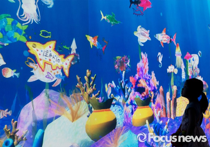 (서울=포커스뉴스) 5일 오후 서울 송파구 잠실 롯데월드 내 마련된 '팀랩월드' 상설전시장을 찾은 어린이가 화려한 디지털아트를 체험하고 있다.