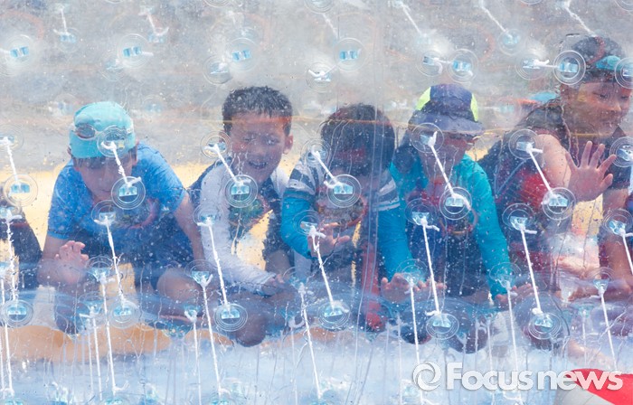 (서울=포커스뉴스) 절기상 입추인 7일 오후 서울 종로구 광화문 세종대로에 설치된 물놀이장에서 어린이들이 워터롤러를 타며 즐거운 시간을 보내고 있다.