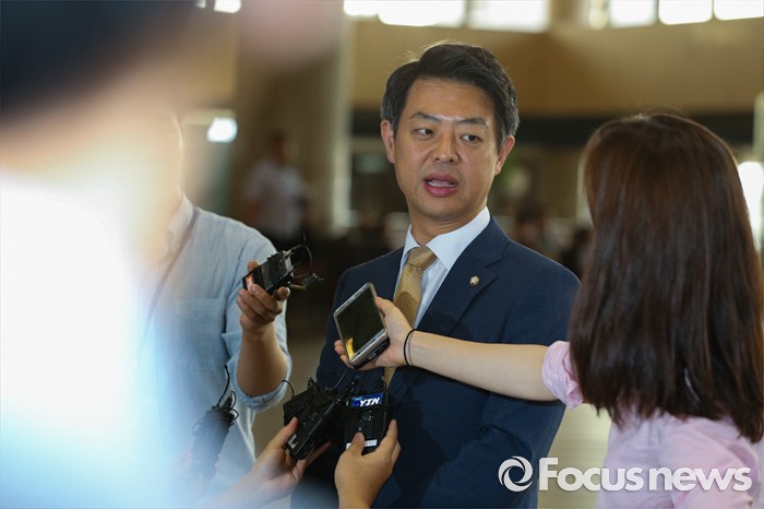 (서울=포커스뉴스) 더불어민주당 사드대책위 간사인 김영호 의원이 사드 배치와 관련한 중국 방문 일정을 위해 8일 오전 서울 강서구 김포공항에서 출국 전 취재진의 질문에 답하고 있다. 김 의원을 비롯해 김병욱·박정·소병훈·손혜원·신동근 의원 등 초선의원 6명은 8일부터 2박 3일간 중국에 머문 뒤 10일 귀국한다.