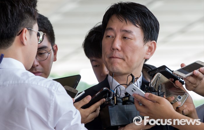 (서울=포커스뉴스) 사기·횡령·배임 등의 혐의로 피소된 이장석 넥센 히어로즈 대표가 8일 오전 서울중앙지검으로 소환조사를 받기 위해 출석하고 있다.