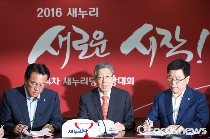 (서울=포커스뉴스) 김희옥(가운데) 새누리당 혁신비상대책위원장이 8일 오전 서울 여의도 새누리당사에서 열린 마지막 혁신비상대책위원회의에 참석해 모두발언을 하고 있다.