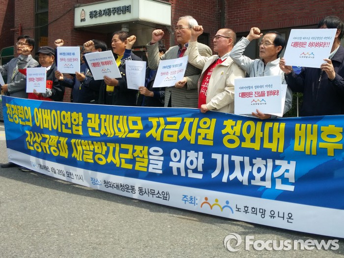 추 사무총장과 허 행정관도 의혹을 제기한 언론사들을 명예훼손 혐의로 맞고소했다.진보성향 노인단체 노후희망유니온이 28일 서울 종로구 청운효자동 주민센터 앞에서 기자회견을 열고 청와대와 어버이연합 등 극우단체를 비판했다. 장지훈 기자 jangpro@focus.co.kr 2016.04.28