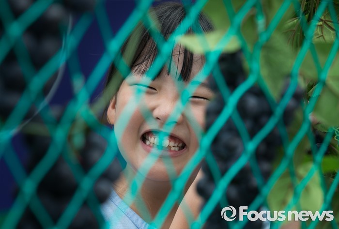 (서울=포커스뉴스) 8일 오전 서울 광화문광장에서 열린 '2016 포도데이' 행사에 참석한 한 어린아이가 포도를 들고 환한 미소를 짓고 있다.