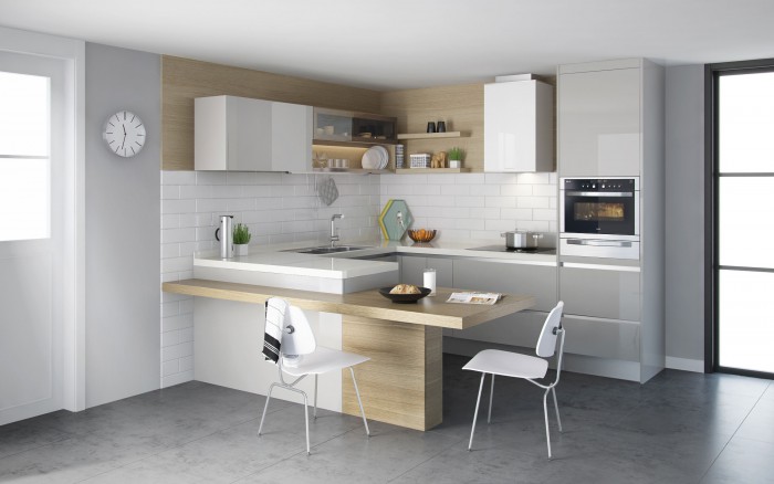 한샘 관계자는 "인테리어에 대한 관심이 높아지면서 대부분 흰색을 선호하던 과거와 달리 부엌가구도 다양한 색상을 찾는 소비자가 늘고 있다"며 "특히 '그레이'가 트렌드 색상으로 주목 받으면서 그레이드별, 스타일별로 세 가지 신제품을 출시하게 됐다"고 말했다.'유로 8000 도브 하이그로시'.<사진제공=한샘>
