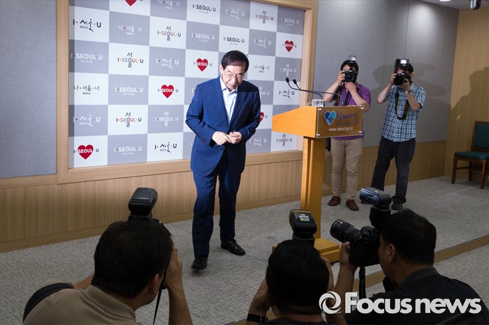 (서울=포커스뉴스) 박원순 서울시장이 8일 오후 서울 중구 서울시청 브리핑룸에서 열린 청년수당과 관련한 박근혜 대통령과 면담을 요청하는 기자회견을 마친 뒤 나서고 있다.