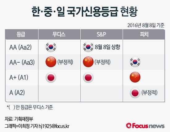 | △ [그래픽] 한·중·일 국가신용등급 현황 |