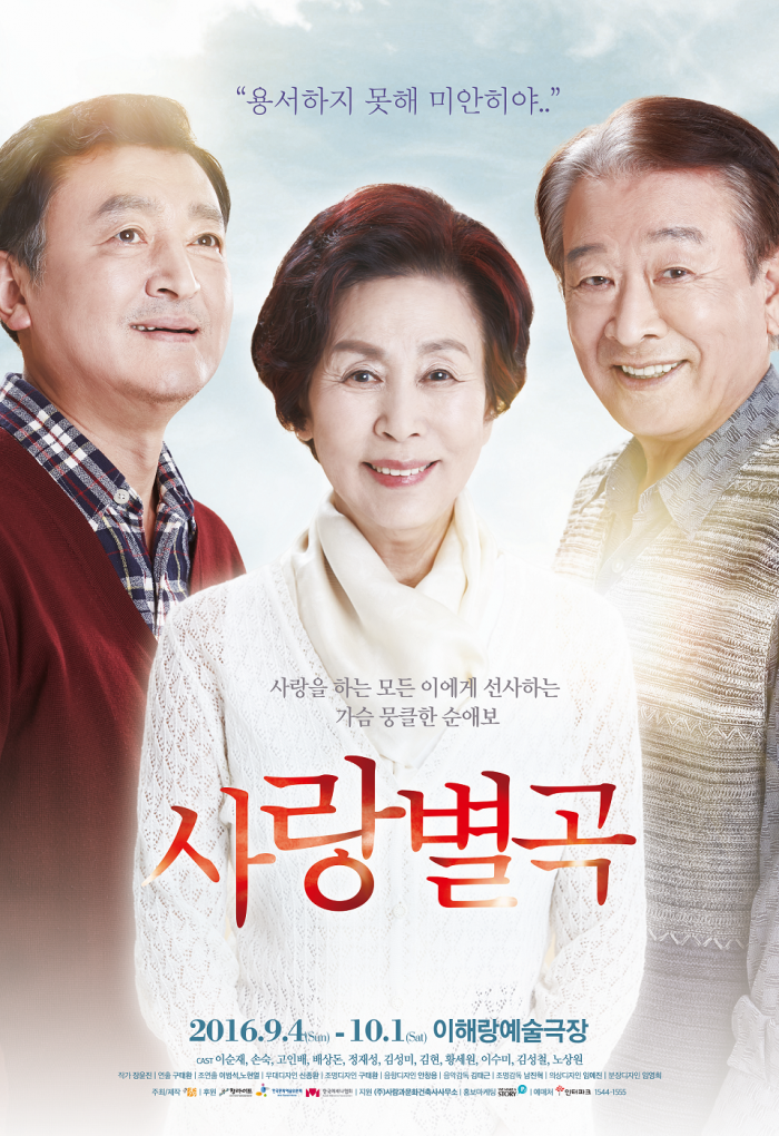 (서울=포커스뉴스) 배우 이순재·손숙·고인배의 출연 소식으로 화제를 모은 연극 '사랑별곡'이 한층 더 농밀해지고 깊어진 이야기로 돌아온다.