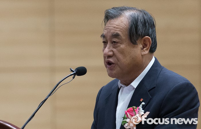 (서울=포커스뉴스) 이명식 공간정보산업협회 회장이 8일 오후 서울 여의도 국회 의원회관에서 열린 공간정보 국외 반출 관련 정책 토론회에 참석해 축사하고 있다.