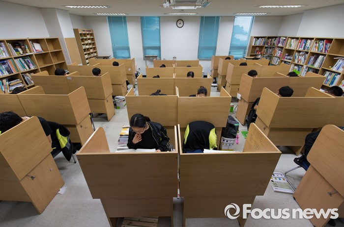 (안성=포커스뉴스) 2017학년도 대학수학능력시험을 101일 앞둔 8일 오후 경기도 안성종로기숙학원에서 재수생들이 자습을 하고 있다.