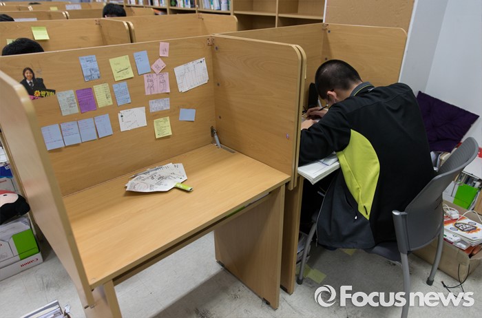 (안성=포커스뉴스) 2017학년도 대학수학능력시험을 101일 앞둔 8일 오후 경기도 안성종로기숙학원에서 재수생들이 자습을 하고 있다.