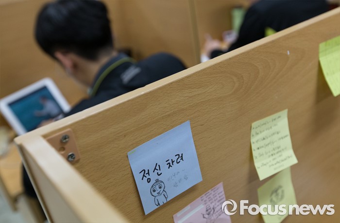 (안성=포커스뉴스) 2017학년도 대학수학능력시험을 101일 앞둔 8일 오후 경기도 안성종로기숙학원에서 재수생들이 자습을 하고 있다.