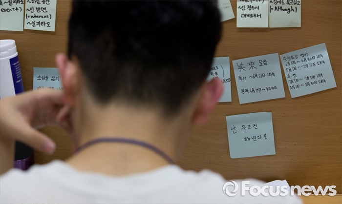 (안성=포커스뉴스) 2017학년도 대학수학능력시험을 101일 앞둔 8일 오후 경기도 안성종로기숙학원에서 재수생들이 자습을 하고 있다.