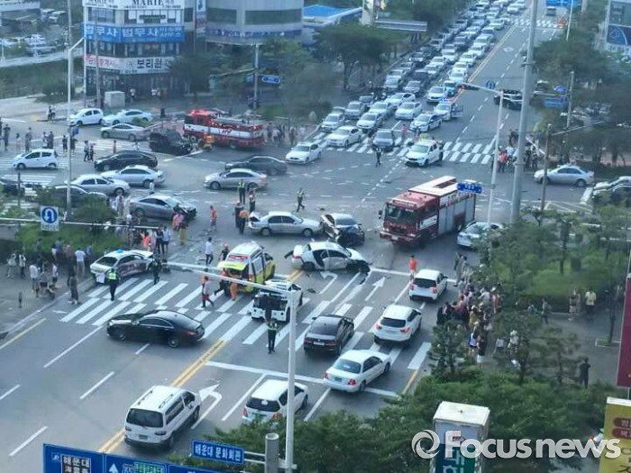 경찰에 따르면 지난달 31일 해운대문화회관 앞 교차로에서 김모(53)씨가 몰단 푸조 승용차가 신호 대기 중인 차량과 횡단보도 보행자, 교차로를 횡단하던 택시 등을 잇따라 들이받았다.