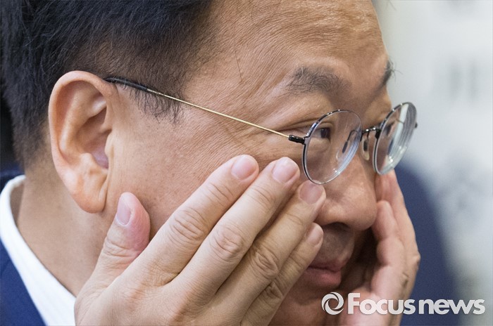 (서울=포커스뉴스) 9일 오전 서울 여의도 국회 귀빈식당에서 열린 2017년도 예산 당정협의에 참석한 유일호 경제부총리 겸 기획재정부 장관이 얼굴을 만지고 있다.