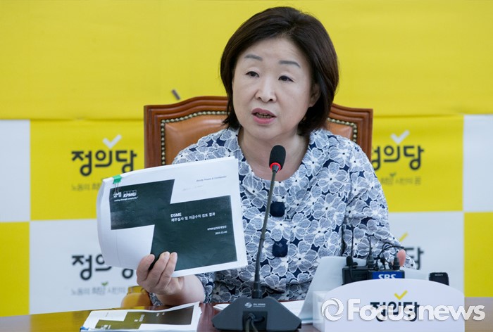 (서울=포커스뉴스) 9일 오전 서울 여의도 국회에서 심상정 정의당 상임대표가 대우해양조선 실사보고서 분석결과 발표 기자회견을 하고 있다.