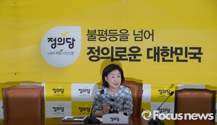 (서울=포커스뉴스) 9일 오전 서울 여의도 국회에서 심상정 정의당 상임대표가 대우해양조선 실사보고서 분석결과 발표 기자회견을 하고 있다.