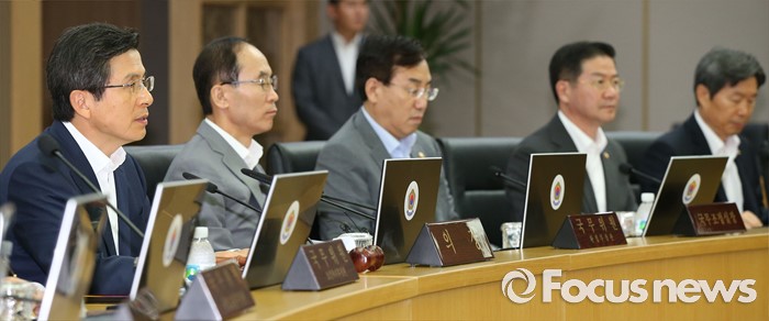(세종=포커스뉴스) 황교안(왼쪽) 국무총리가 9일 오전 세종시 정부세종청사 국무회의장에서 서울-세종 영상회의로 열린 국무회의를 주재하고 있다.