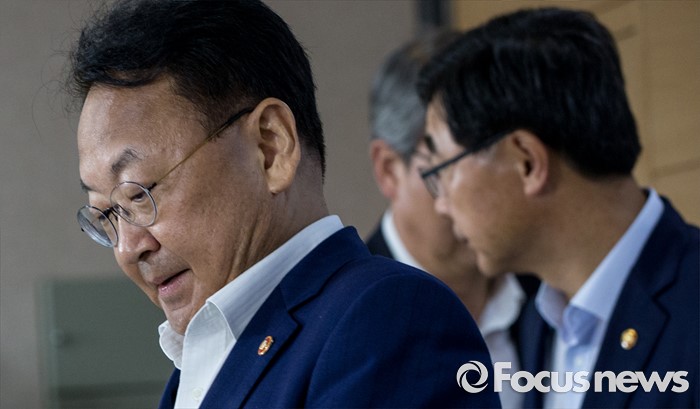 (서울=포커스뉴스) 9일 오전 정부서울청사에서 열린 '2016년 추경예산안 국회 조기통과' 관련 합동브리핑에 참석한 유일호(맨 왼쪽) 경제부총리 겸 기획재정부 장관 및 관계부처 장차관들이 착석하고 있다.