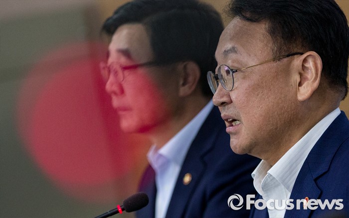 (서울=포커스뉴스) 9일 오전 정부서울청사에서 열린 '2016년 추경예산안 국회 조기통과' 관련 합동브리핑에 참석한 유일호(오른쪽) 경제부총리 겸 기획재정부 장관이 호소문을 발표하고 있다.