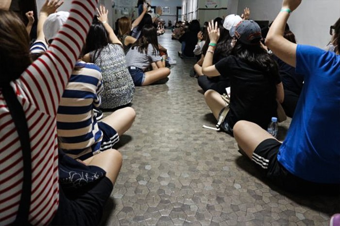 (서울=포커스뉴스) 9일 오전 서울 마포구 이화여대에서 최경희 총장 사퇴를 요구하며 농성을 벌이고 있는 본관 내부 모습이 공개됐다. 본관에서 이대 학생들이 농성을 이어가고 있다. <사진제공=이화여대언론팀>