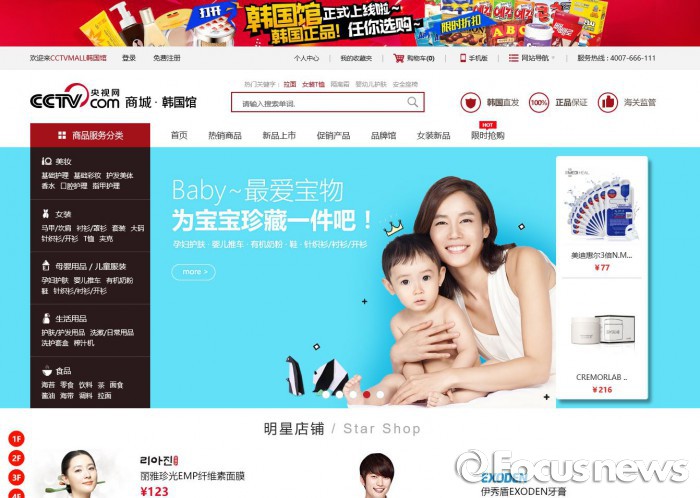 CCTV몰은 가입자가 8억명에 달하는 중국 국영 CCTV가 직접 운영하는 온라인 전자상거래 쇼핑몰이다. CCTV는 이날 한국관 오픈과 동시에 지난 2년여 동안 시범 운영해 온 전체 온라인 쇼핑몰도 함께 오픈했다.